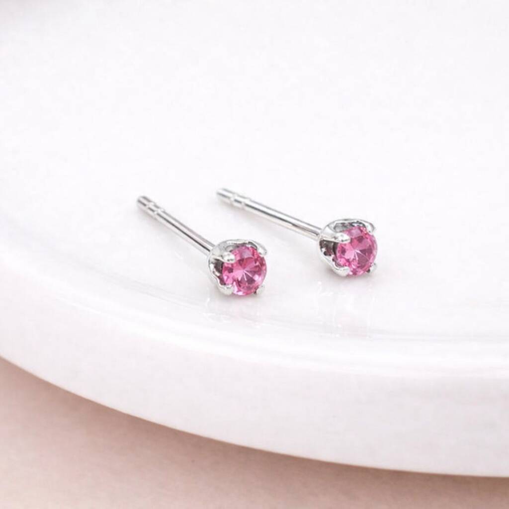 Sterling Silver Pink Tourmaline Micro Stud Earrings – 3mm