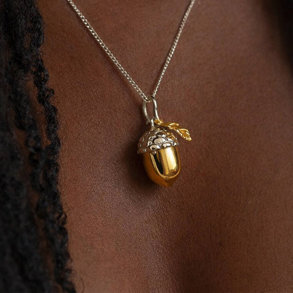 Personalised Sterling Silver And Gold Acorn Pendant Necklace With Leaf
