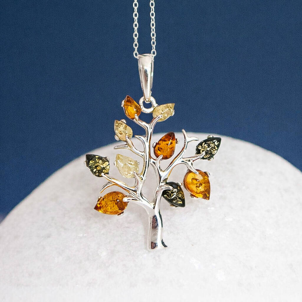 This handcrafted Tree of Life pendant is made from solid 925 sterling silver and set with genuine Baltic amber in natural mixed tones, creating a timeless piece rich in symbolism and meaning.