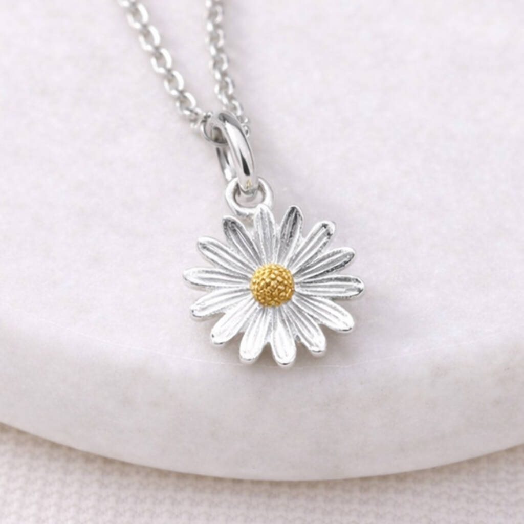 Personalised Sterling Silver April Daisy Birth Flower Pendant Necklace