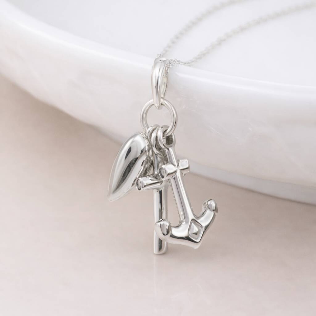 Personalised Sterling Silver Faith, Hope And Charity Charm Pendant Necklace