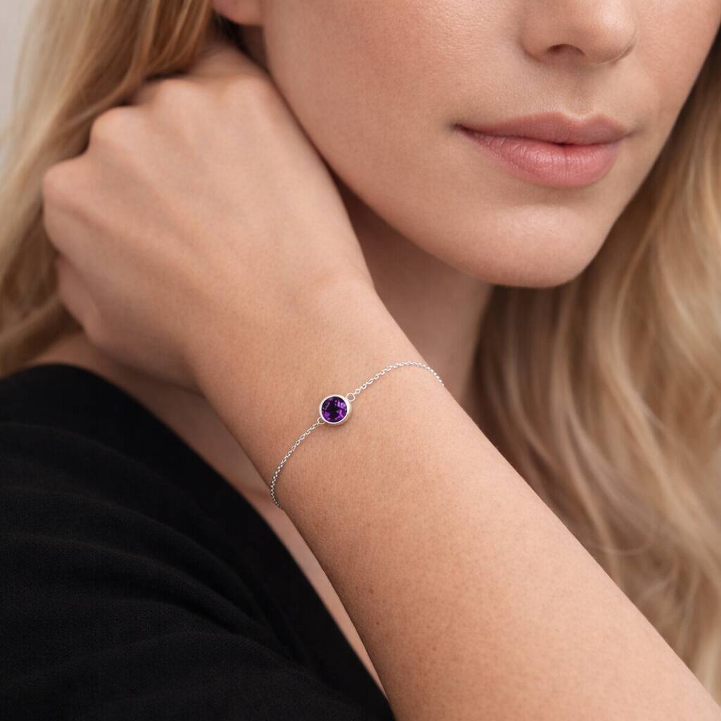 Personalised Sterling Silver February Birthstone Amethyst Bracelet