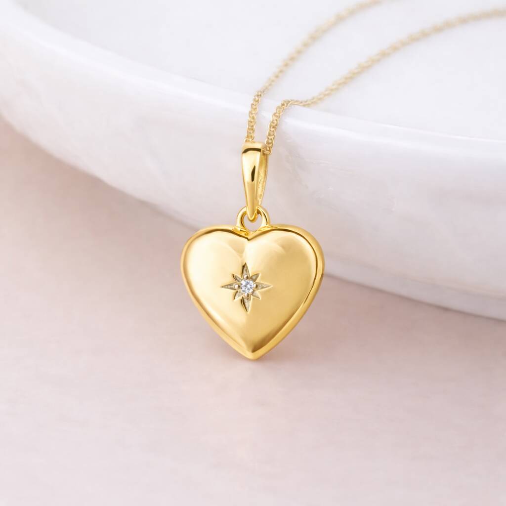 Personalised Gold Plated Sterling Silver North Star Heart Locket Necklace With Photos