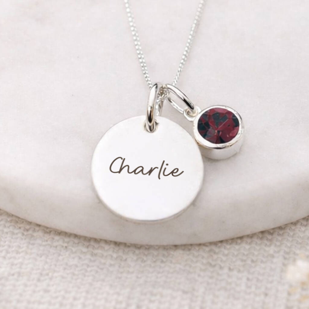 Personalised Sterling Silver January Birthstone Garnet Pendant Necklace
