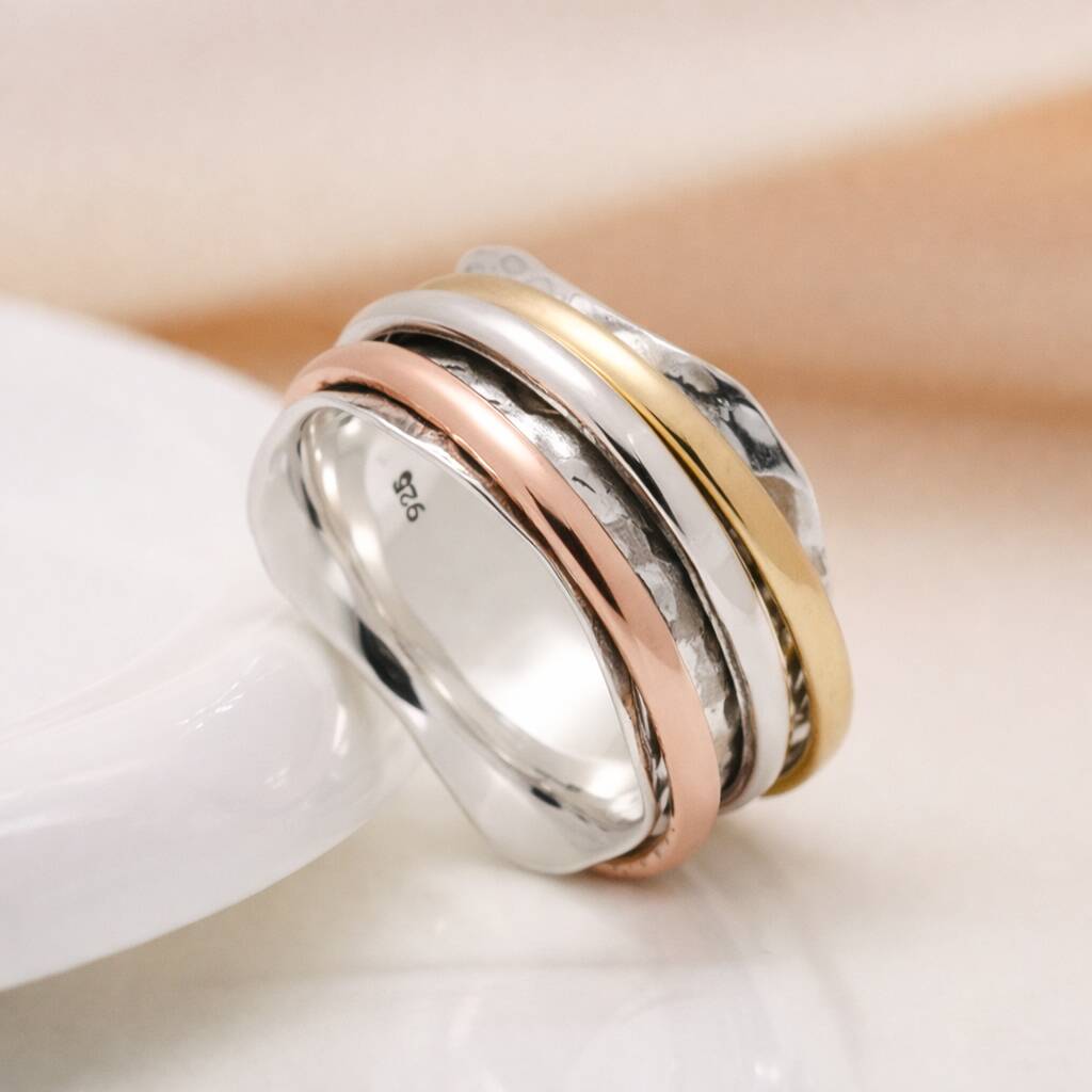 Personalised Sterling Silver, Brass And Copper Triple Spinner Ring – 8mm