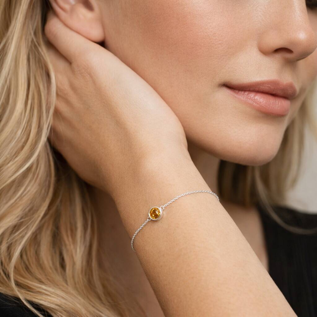 Perfect as a November birthstone bracelet, citrine inspired jewellery, sterling silver personalised bracelet, birthday gift, or meaningful anniversary present, this design blends warm colour with timeless simplicity.