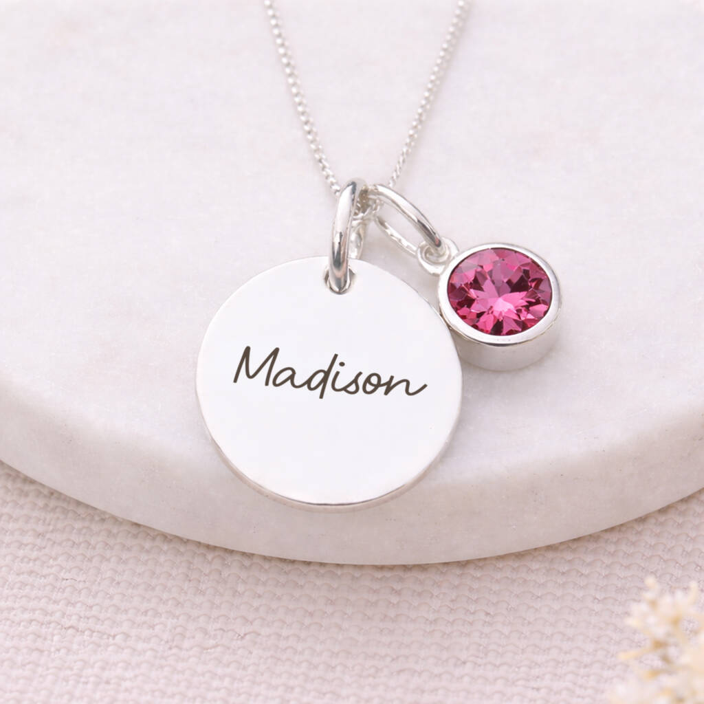 Personalised Sterling Silver October Birthstone Tourmaline Pendant Necklace