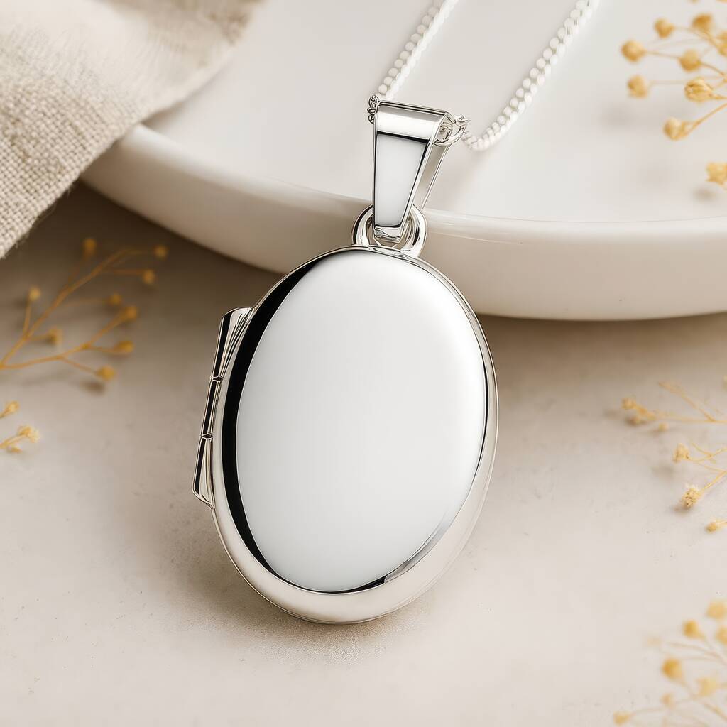The locket opens to hold two small photos or keepsakes, allowing you to carry loved ones close to your heart. To make it truly personal, the back can be engraved with a name, initials, date, or short message — creating a unique piece of jewellery to be cherished for years to come.
