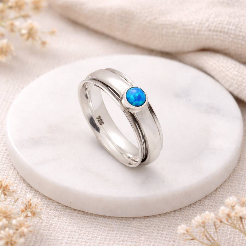 Personalised Sterling Silver Blue Opal Spinner Ring – 5mm