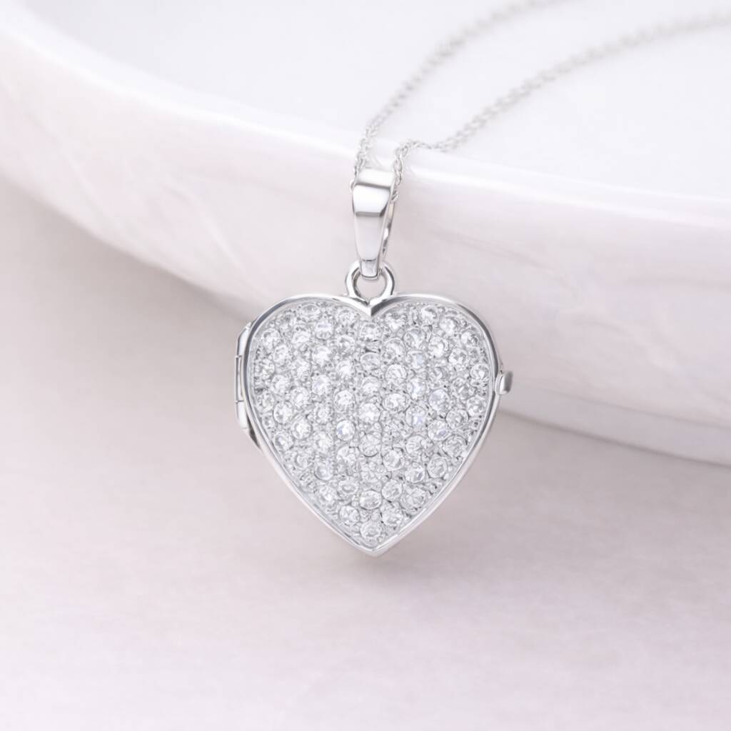 Personalised Sparkling Sterling Silver Heart Locket Necklace With Photos