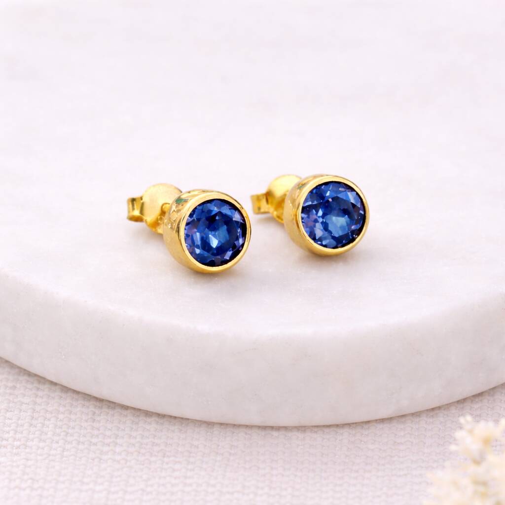 Gold Plated Sterling Silver September Sapphire Birthstone Stud Earrings – 7mm