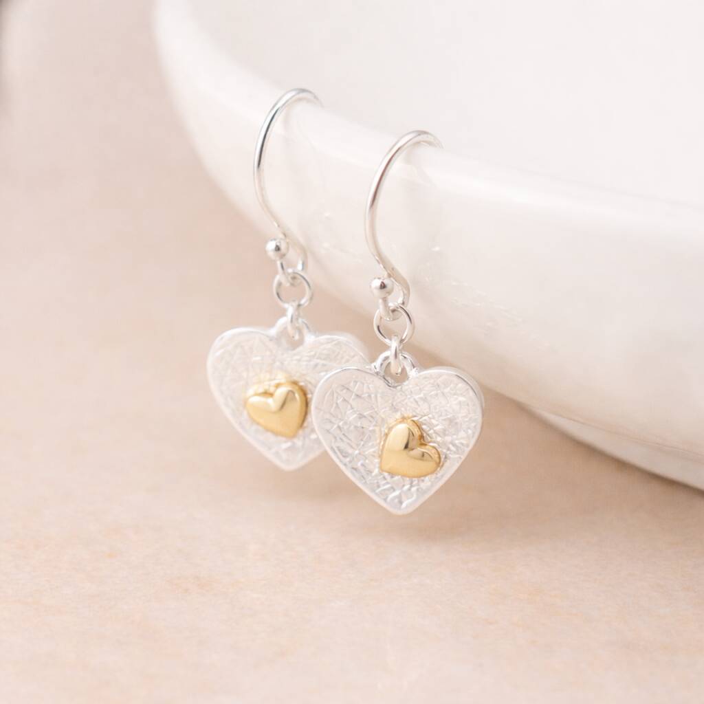 Silver And Gold Plated Double Heart Drop Earrings – 10mm