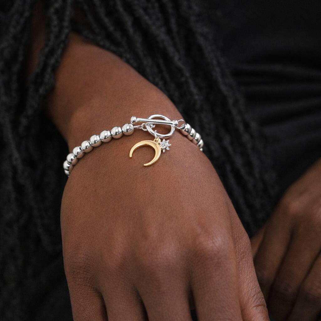 Silver And Gold Plated Sun And Moon Charm T Bar Bracelet