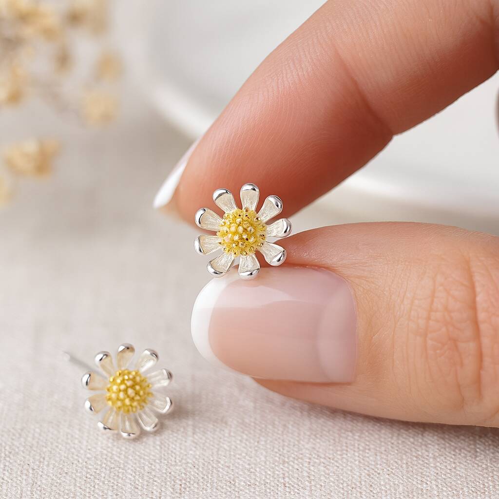 Sterling Silver And Gold Daisy Stud Earrings – 10mm