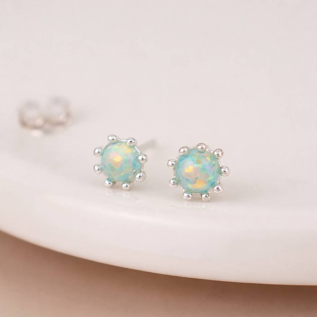 Sterling Silver Green Opal Micro Stud Earrings – 4mm