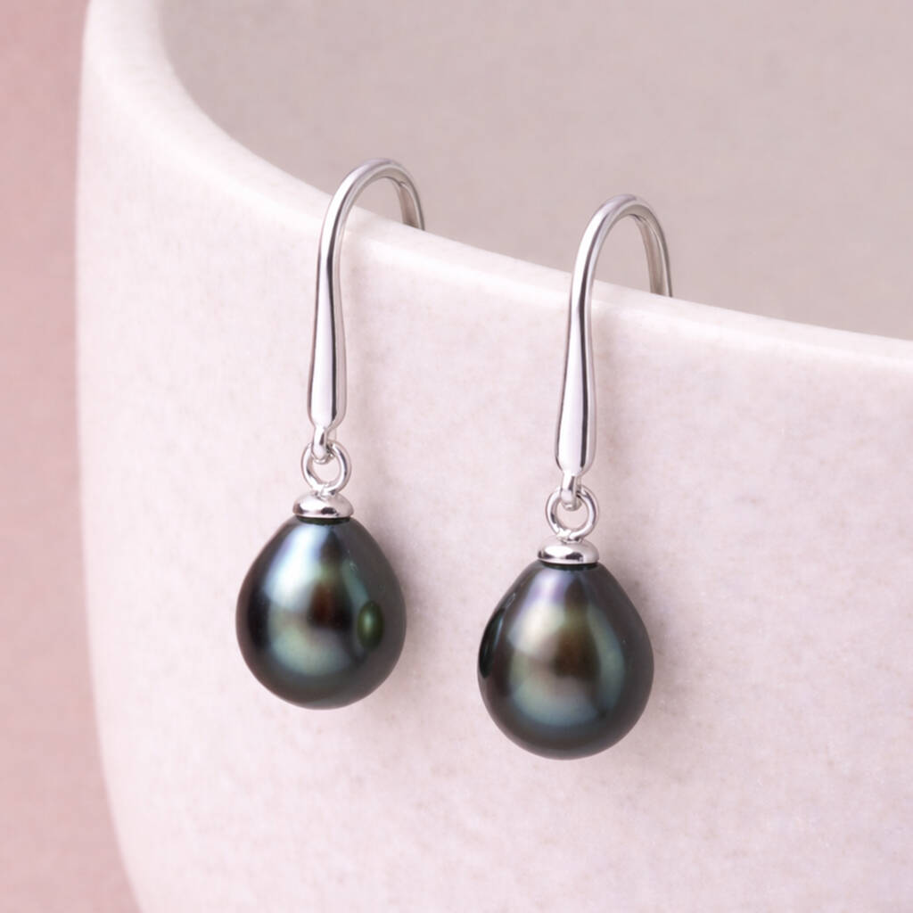 Sterling Silver Black Freshwater Pearl Drop Earrings – 8mm