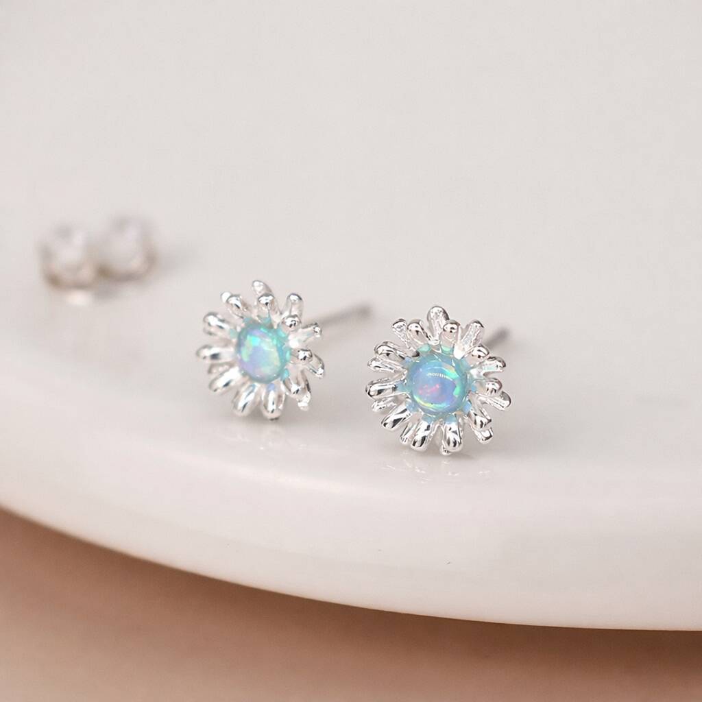 Sterling Silver Blue Opal Daisy Stud Earrings – 6mm