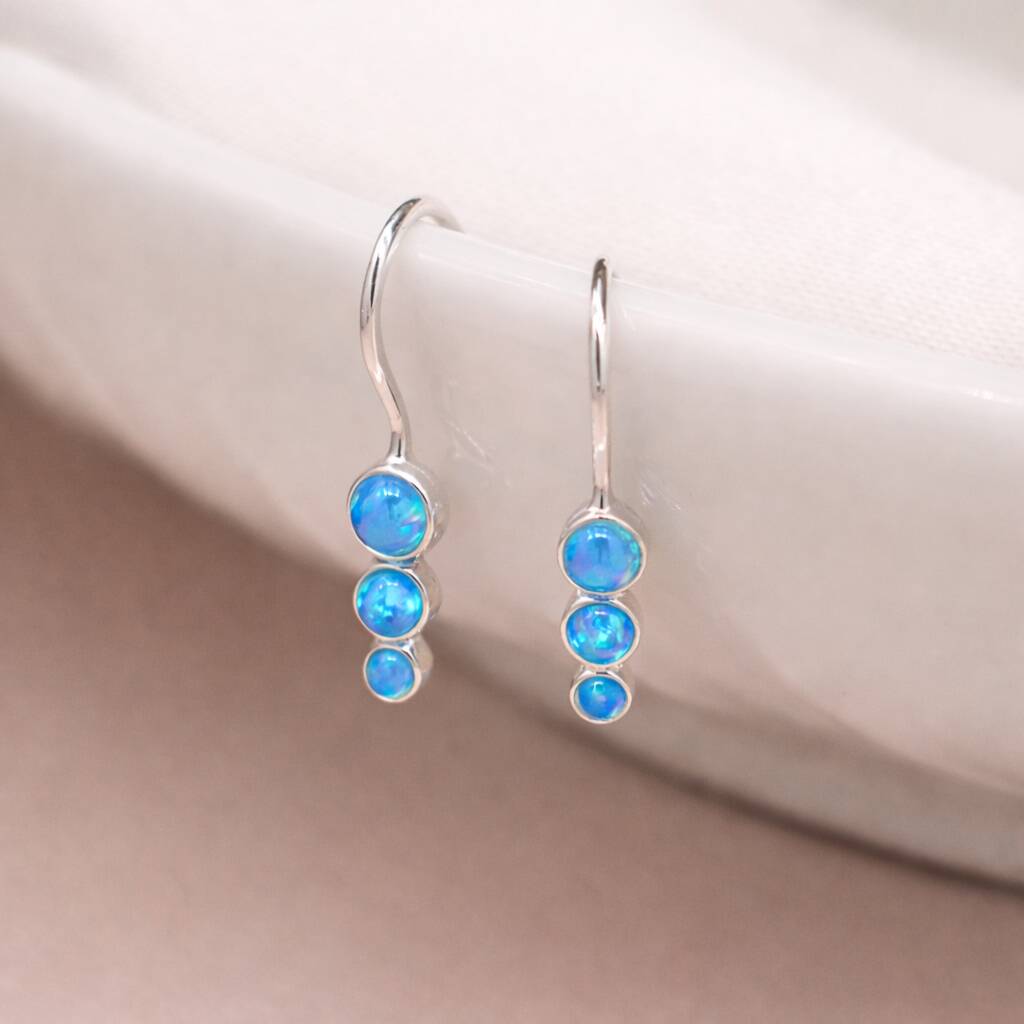 Sterling Silver Blue Opal Trio Drop Earrings – 16mm X 4mm
