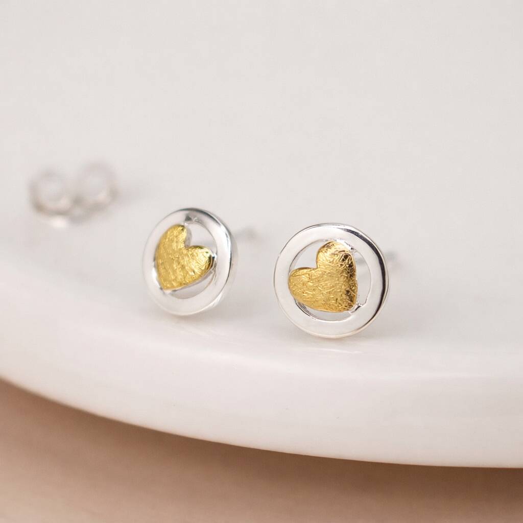 Sterling Silver And Gold Heart Stud Earrings – 8mm