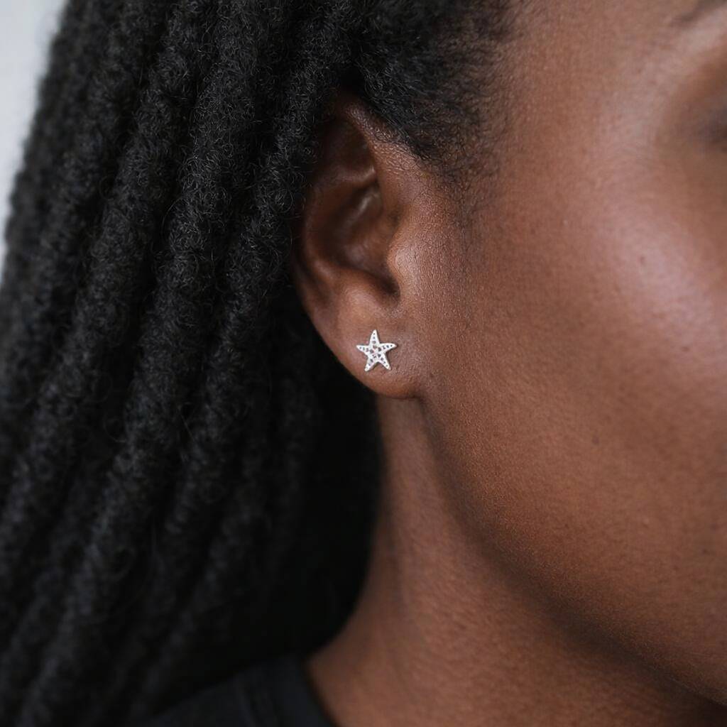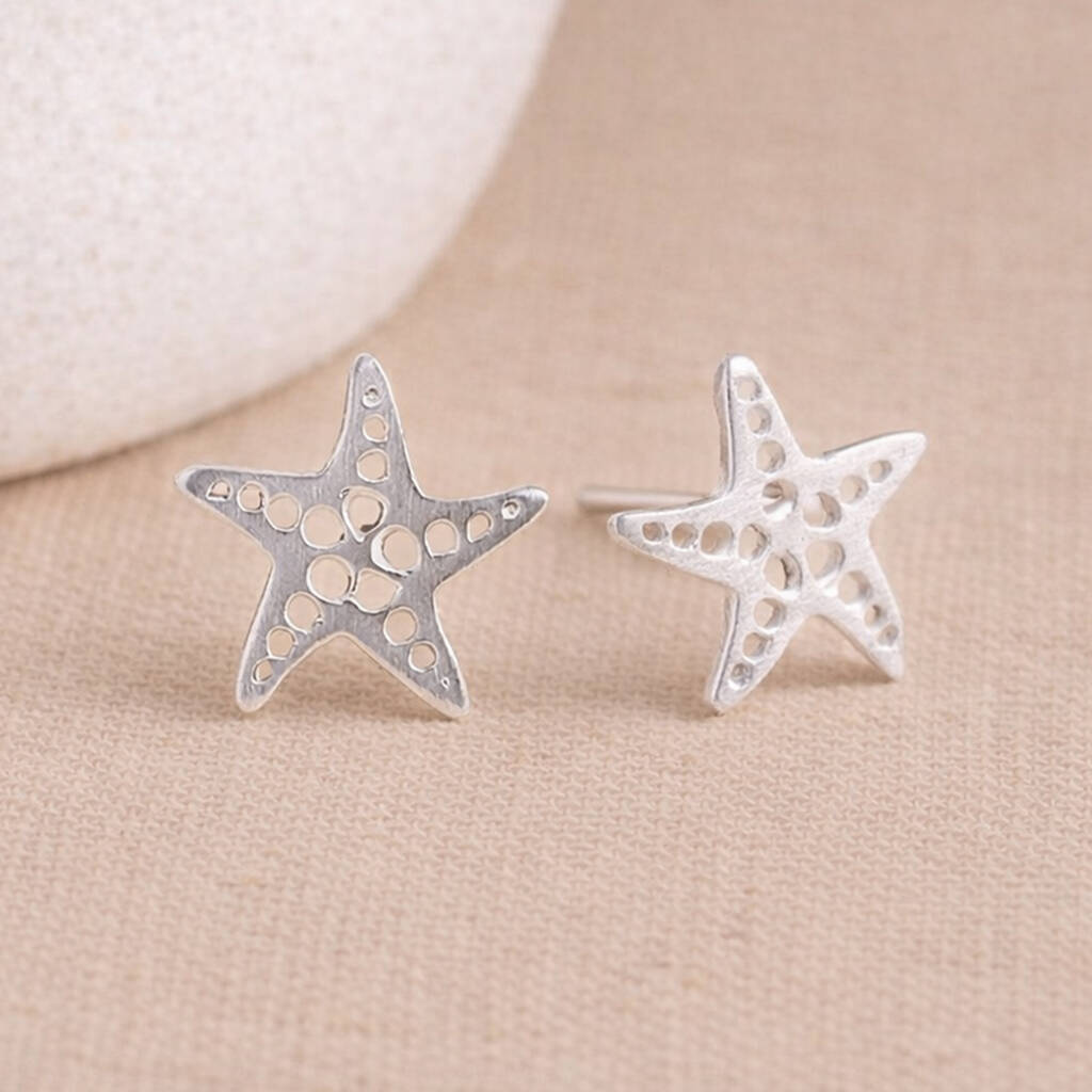 Sterling Silver Dotty Starfish Stud Earrings – 8mm
