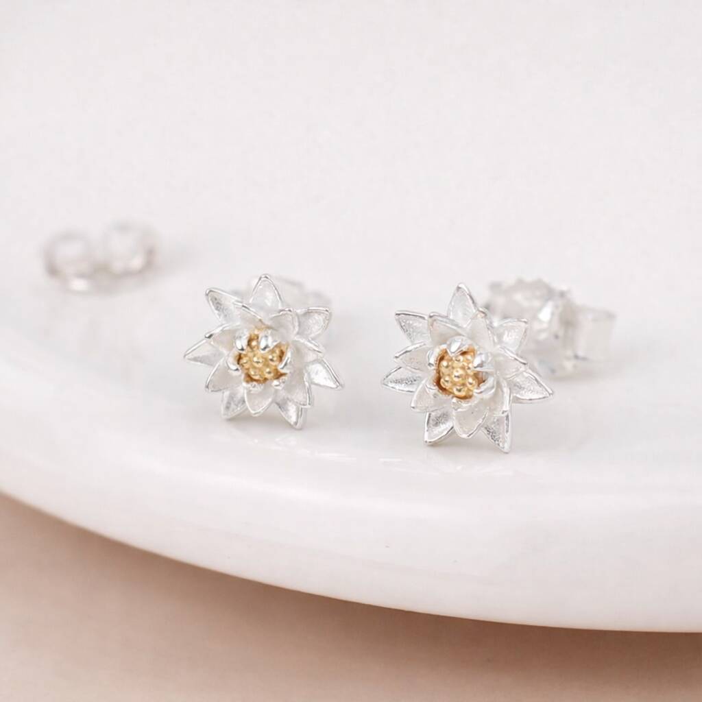 Sterling Silver And Gold July Birth Flower Stud Earrings – 8mm