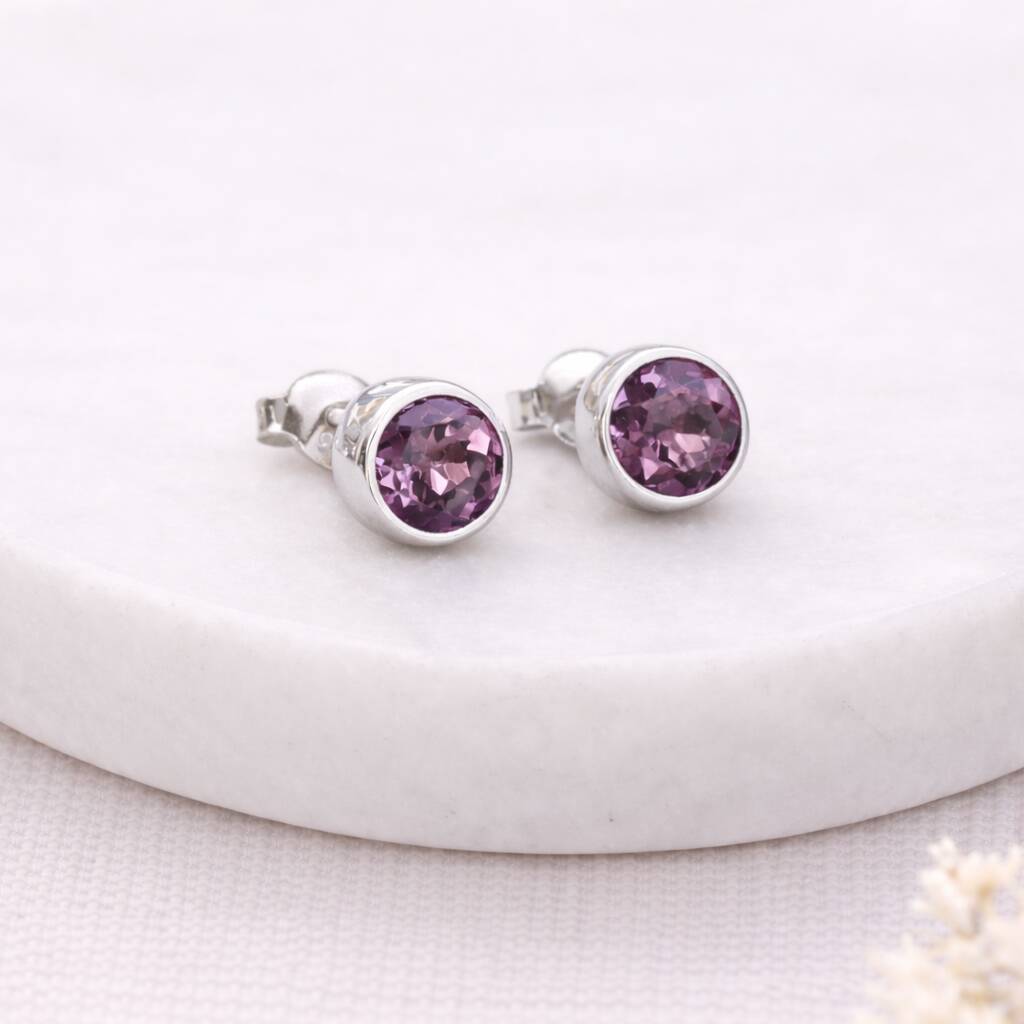 Sterling Silver June Alexandrite Birthstone Stud Earrings – 7mm