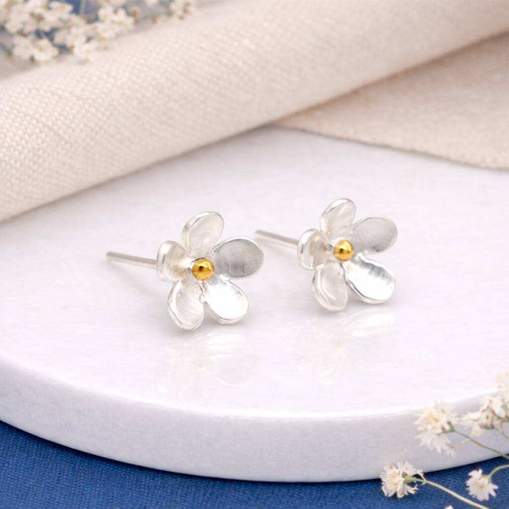 Sterling Silver And Gold Forget Me Not Stud Earrings – 8mm