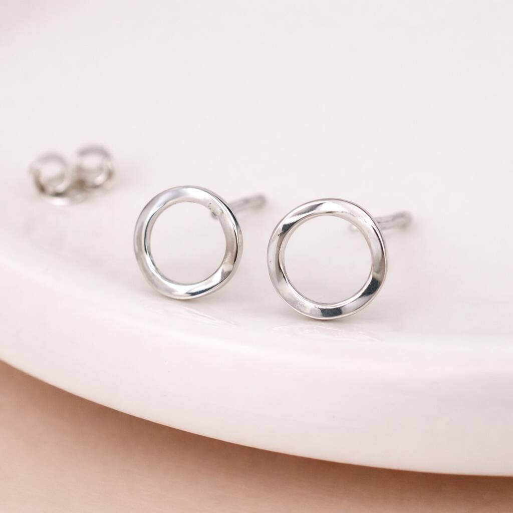 Sterling Silver Organic Open Hoop Stud Earrings – 10mm