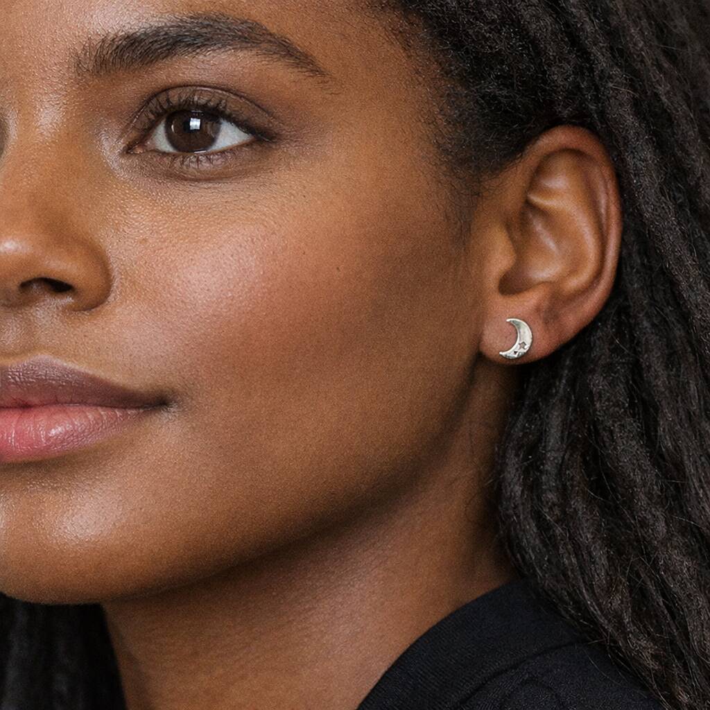 Sterling Silver Moon And Star Stud Earrings – 10mm X 7mm