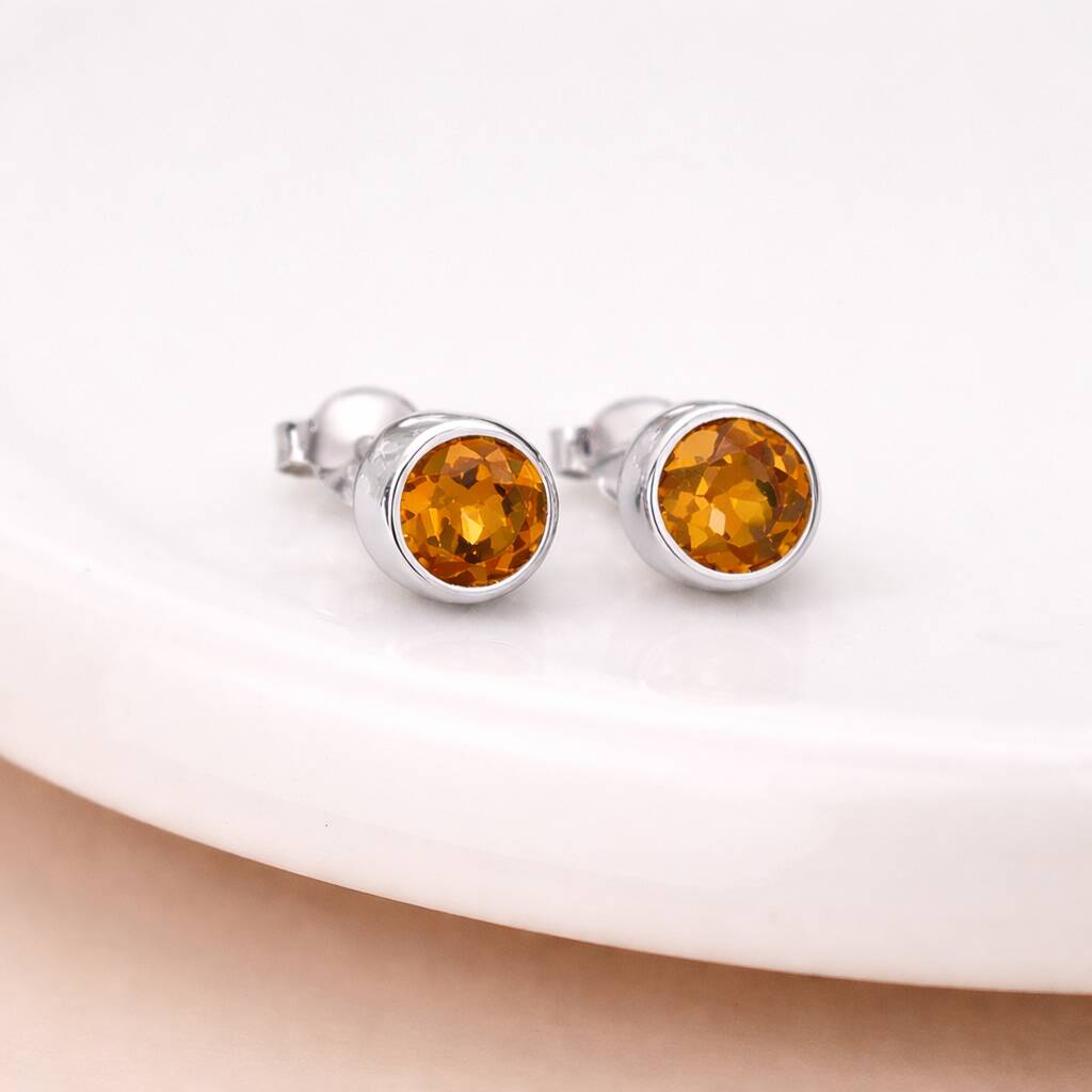 Sterling Silver November Citrine Birthstone Stud Earrings – 7mm