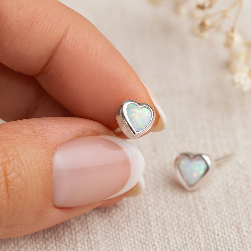 Sterling Silver White Opal Heart Stud Earrings – 5mm