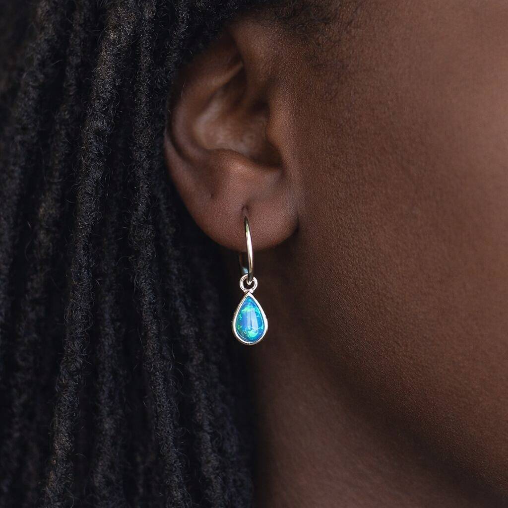 Sterling Silver Blue Opal Half Hoop Stud Earrings – 20mm