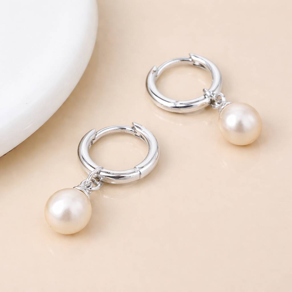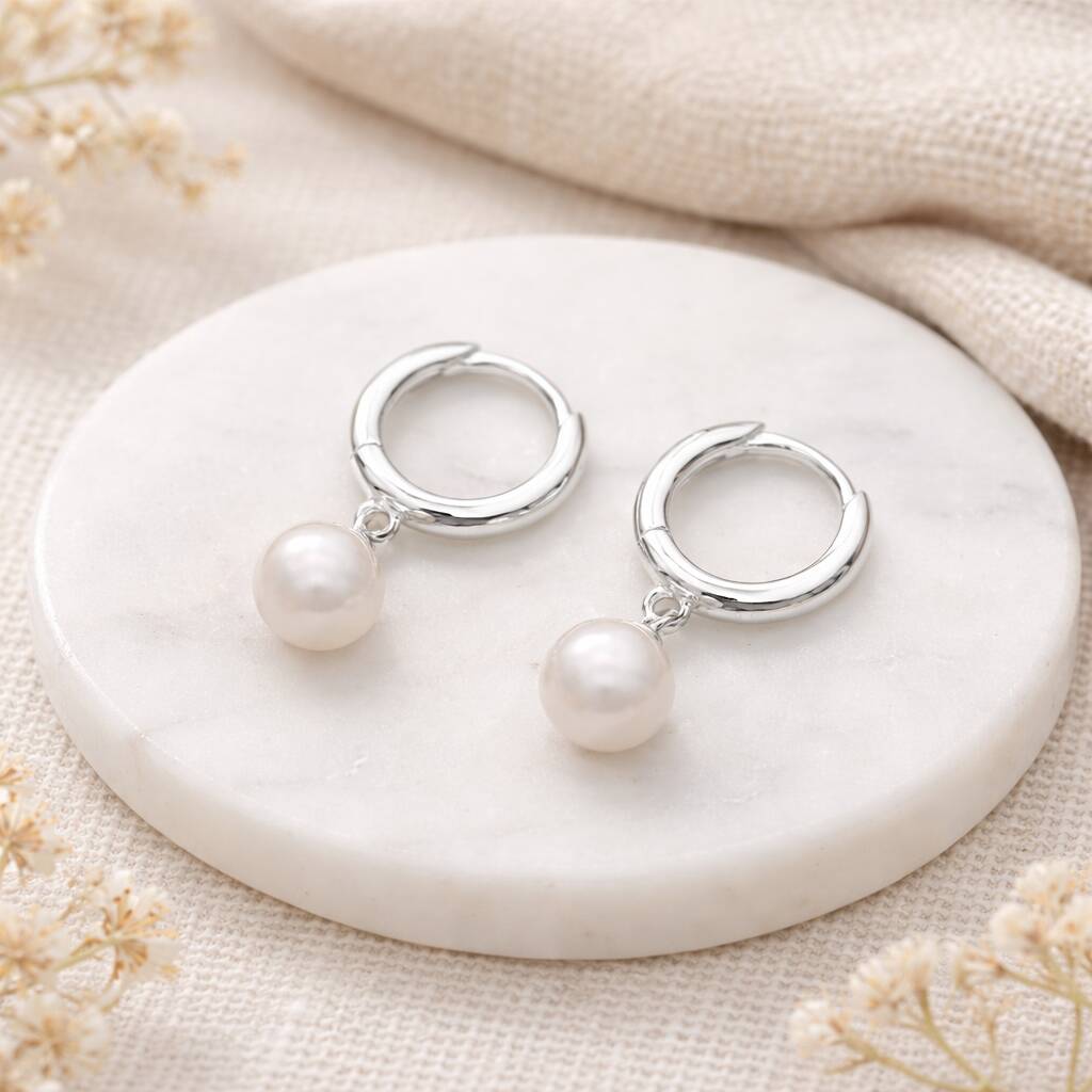 These handcrafted pearl huggie earrings are made from solid 925 sterling silver and finished with genuine freshwater pearls, offering a classic yet contemporary design that is easy to wear every day.