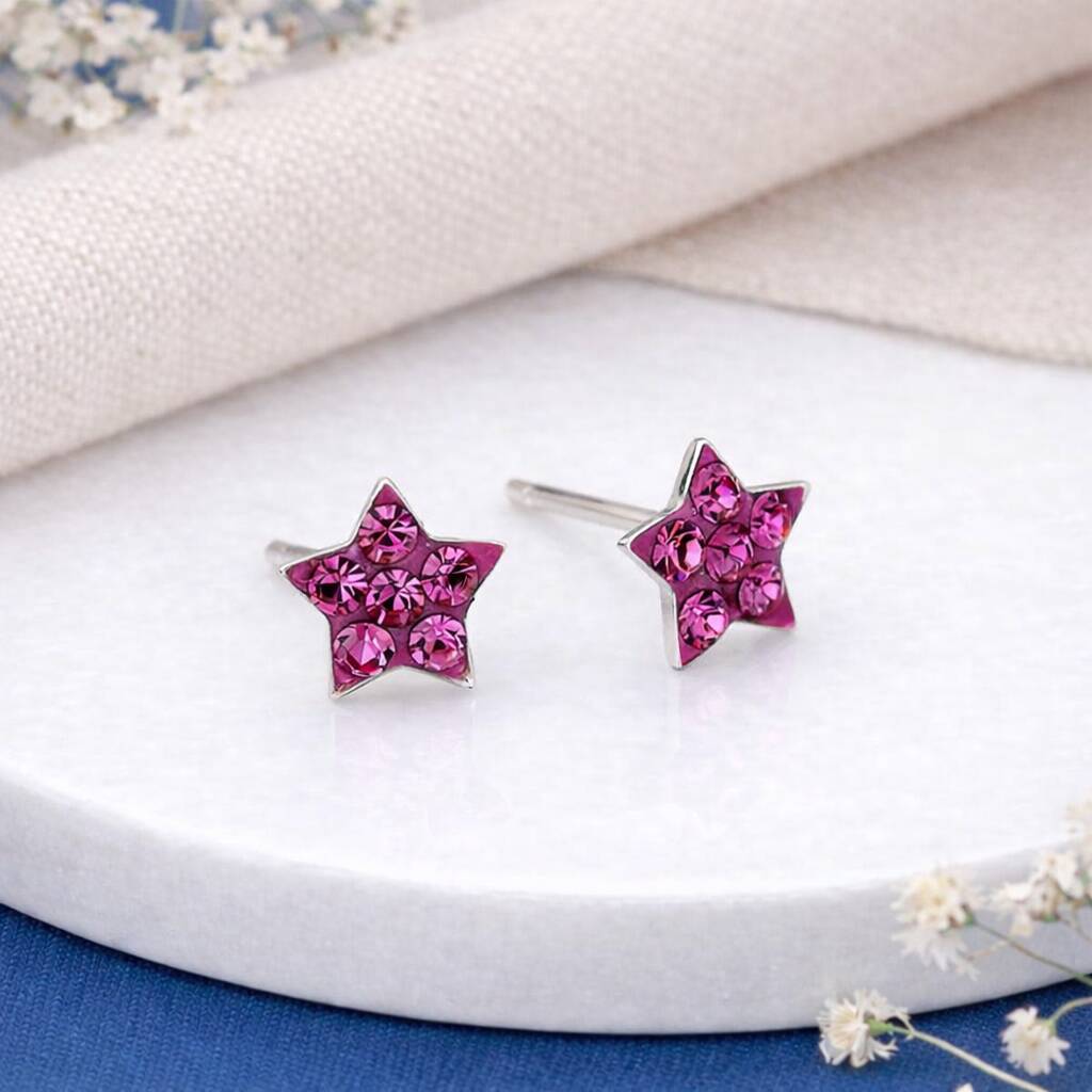 Sterling Silver Pink Star Stud Earrings – 5mm