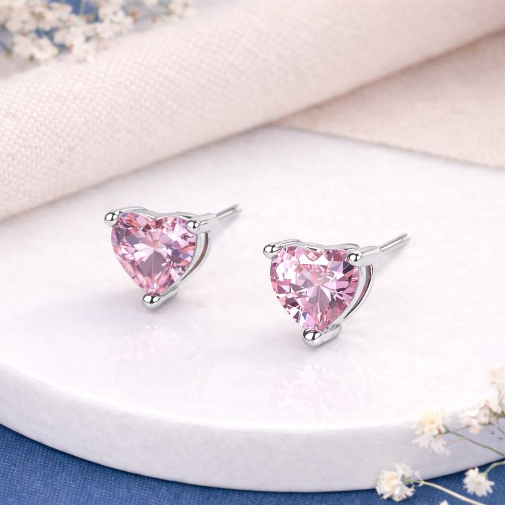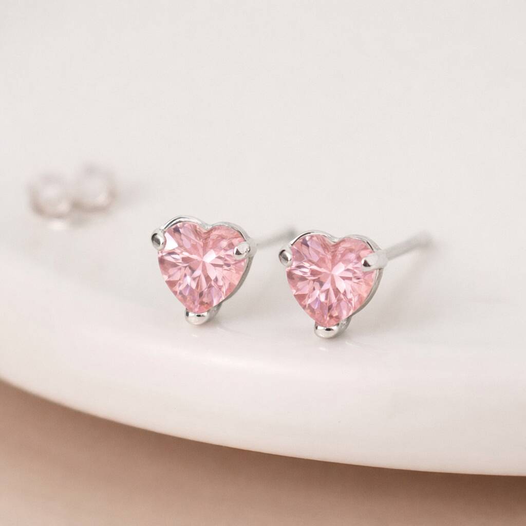 Sterling Silver Pink Heart Cz Stud Earrings – 7mm