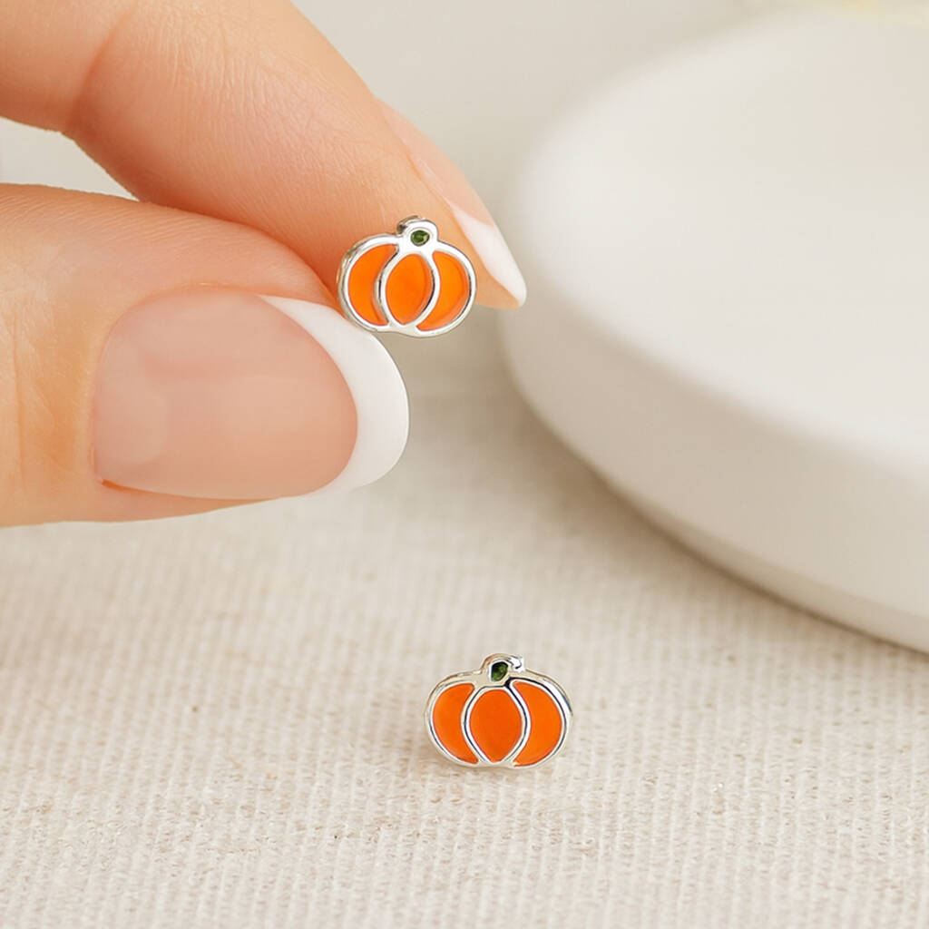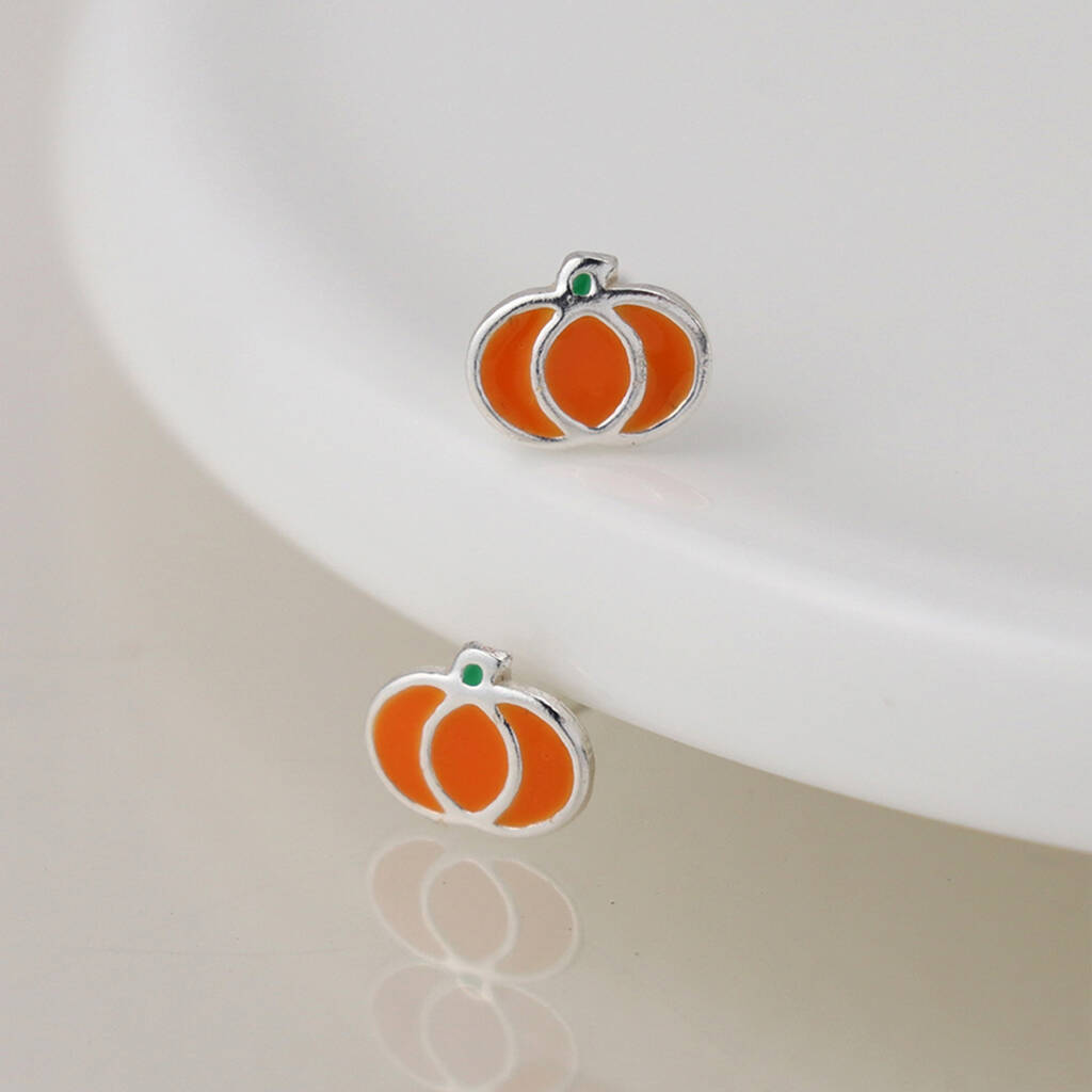 Sterling Silver Pumpkin Stud Earrings: Autumn Halloween Gift – 5mm, 1 of 4