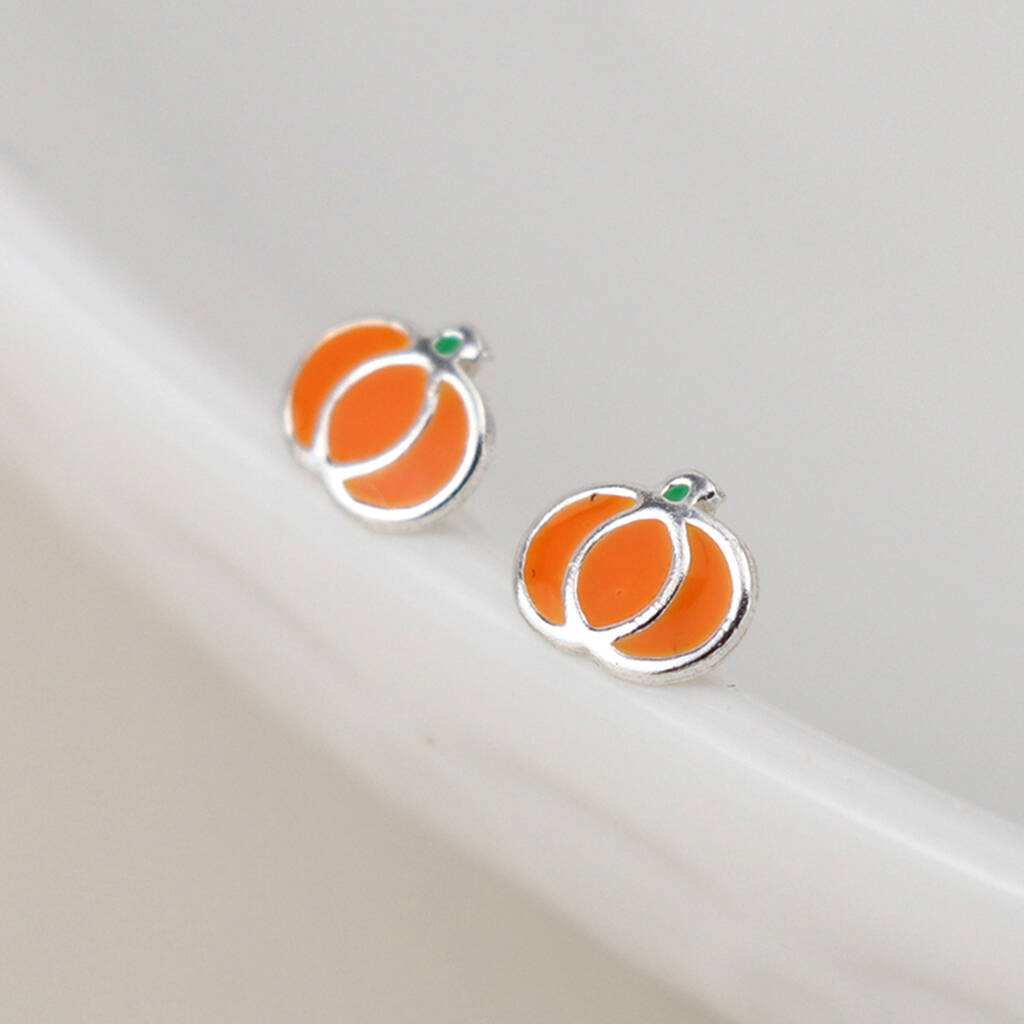 • Sterling Silver Pumpkin Stud Earrings: Autumn Halloween Gift – 5mm, thumbnail 1 of 4