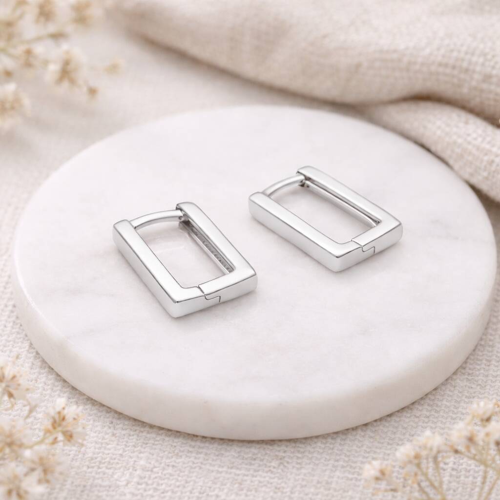Sterling Silver Rectangle Huggie Hoop Earrings – 13mm X 9mm