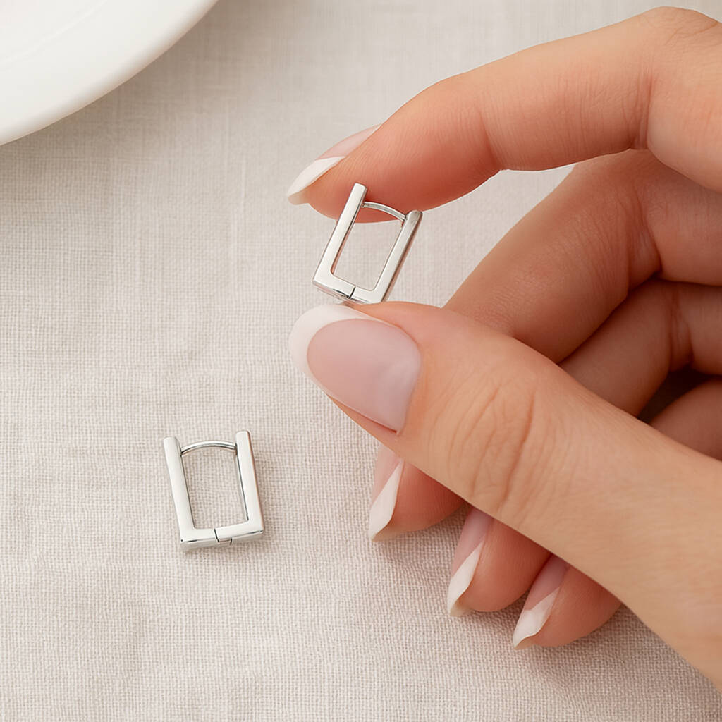 Sterling Silver Rectangle Huggie Hoop Earrings – 15mm