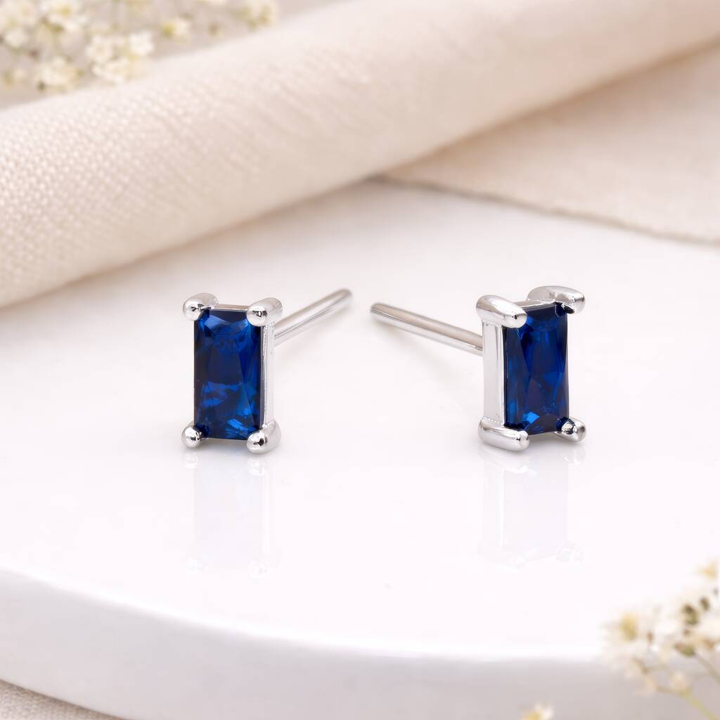 Sterling Silver Sapphire Baguette Stud Earrings – 6mm X 4mm