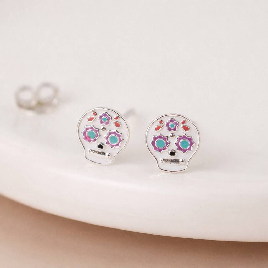 Sterling Silver Sugar Skull Stud Earrings – 10mm X 8mm