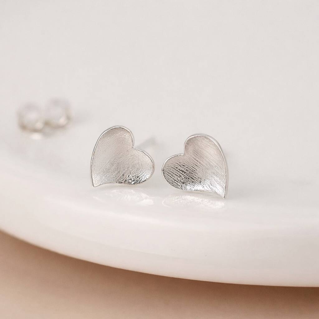 Sterling Silver Textured Heart Stud Earrings – 7mm