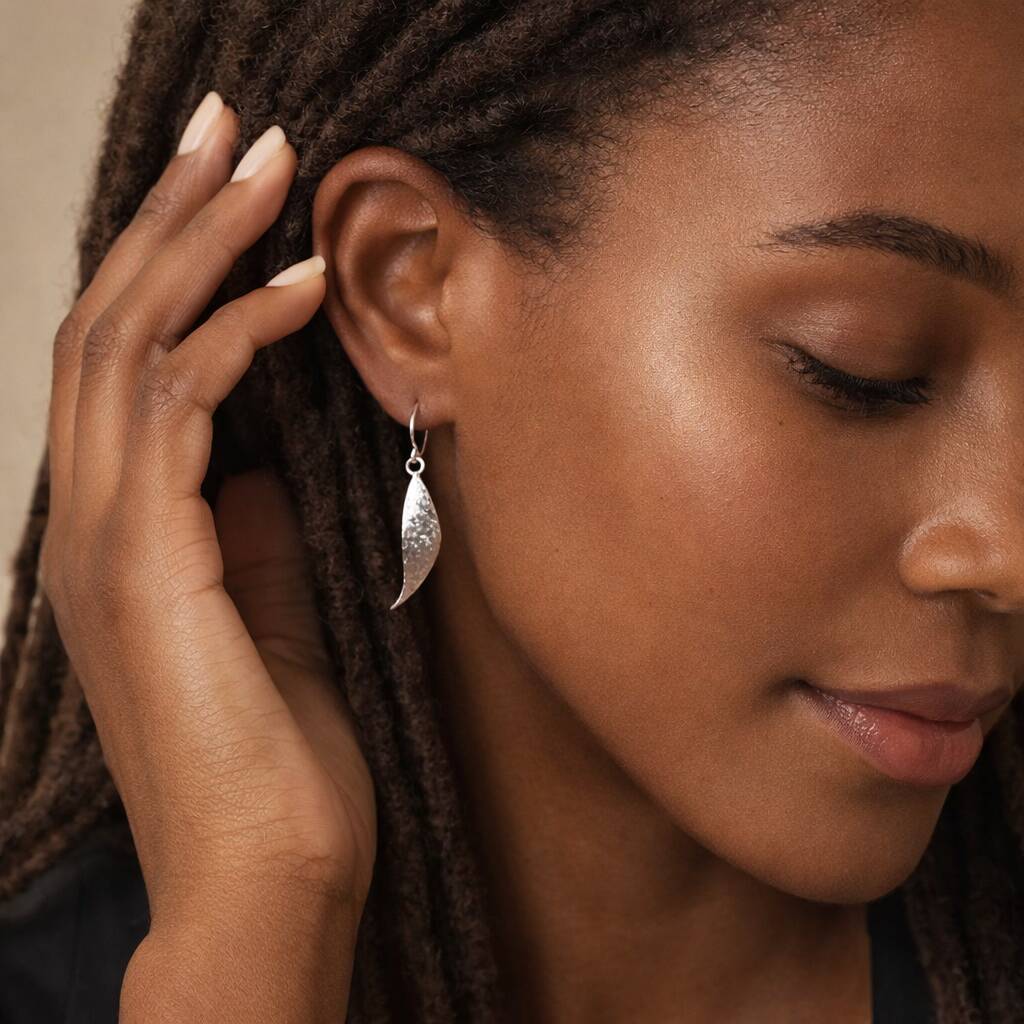 Sterling Silver Hammered Leaf Drop Earrings