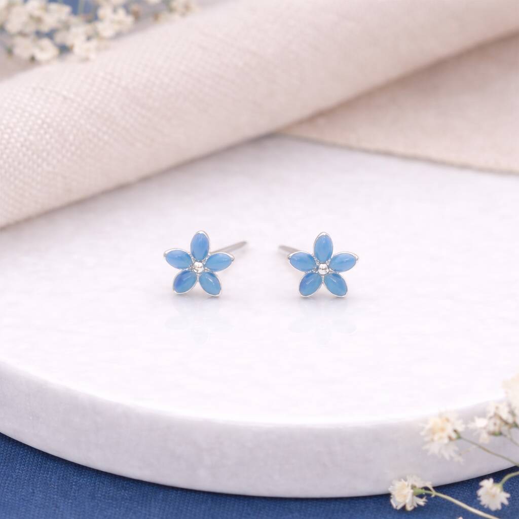 Sterling Silver Blue Forget Me Not Micro Stud Earrings – 4mm