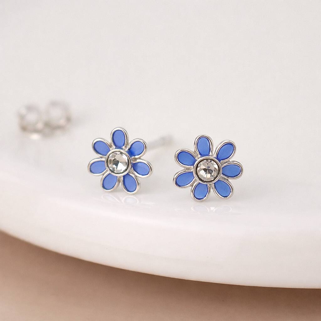 Sterling Silver Blue Forget Me Not Stud Earrings – 5mm
