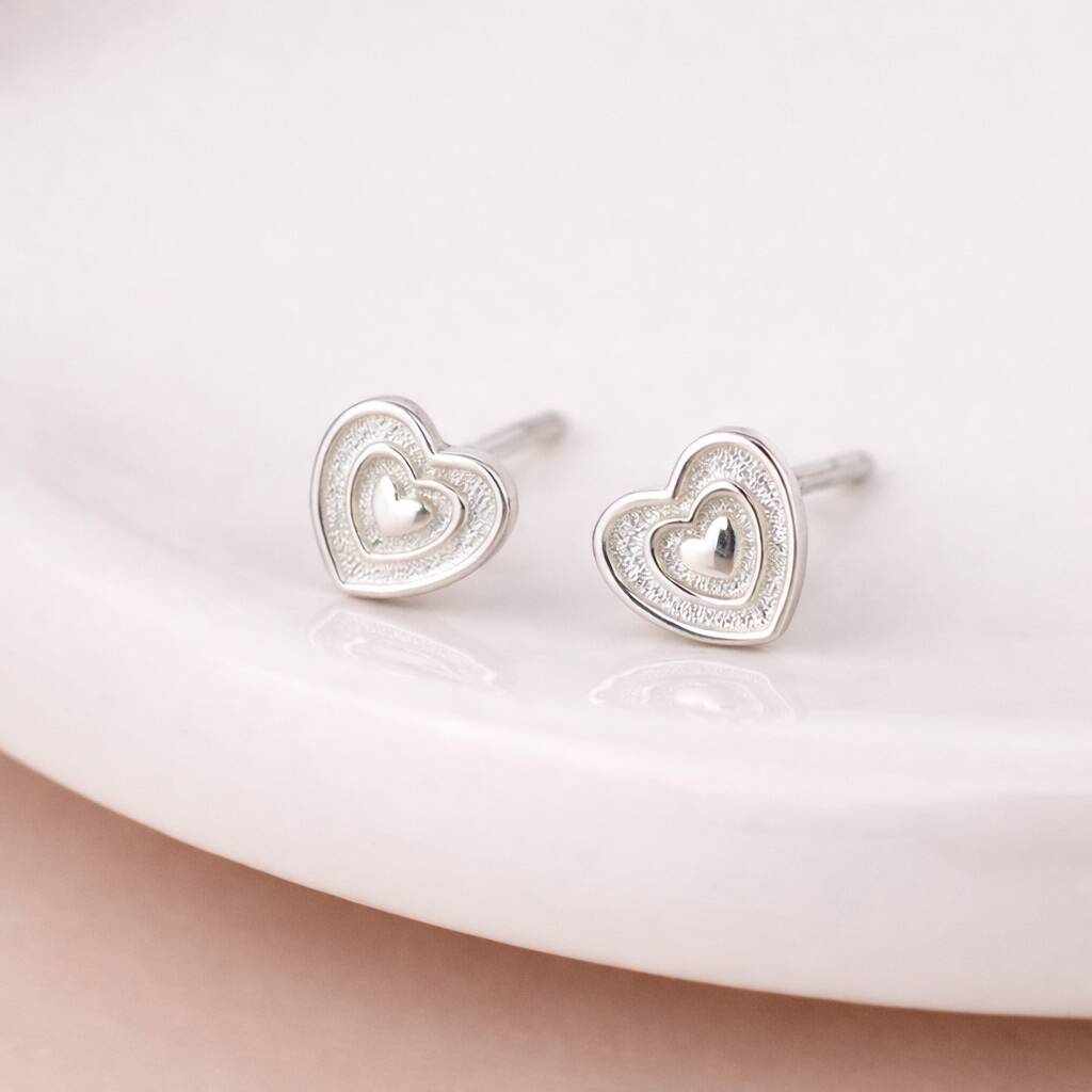 Sterling Silver Tiny Textured Heart Stud Earrings – 5mm