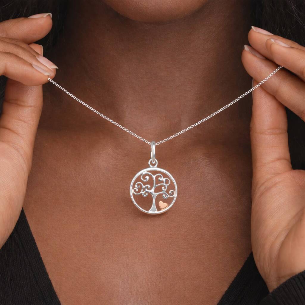 Personalised Sterling Silver And Rose Gold Tree Of Life Heart Pendant Necklace