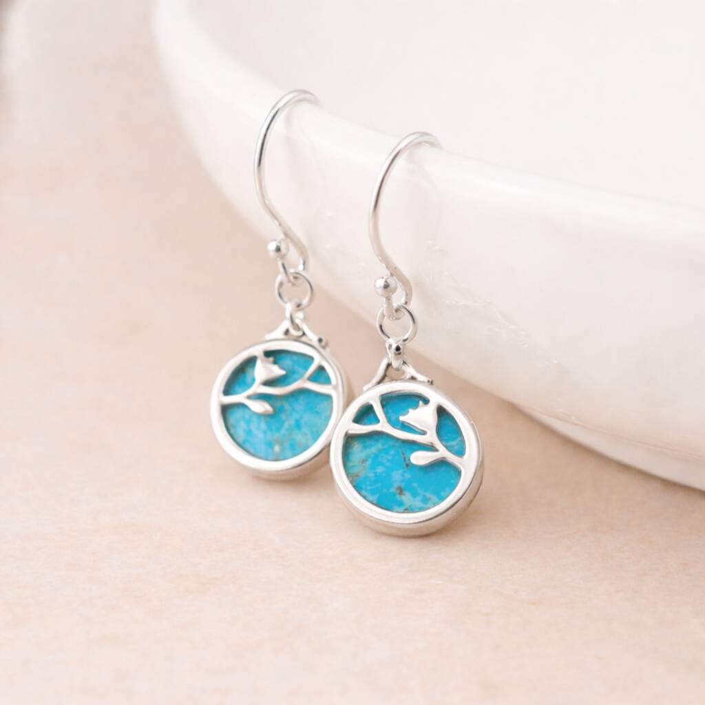 Sterling Silver Turquoise Flower Drop Earrings – 9mm