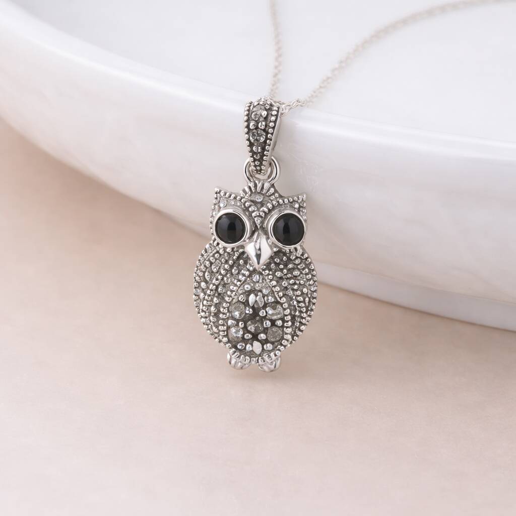 Personalised Sterling Silver Marcasite Owl Pendant Necklace