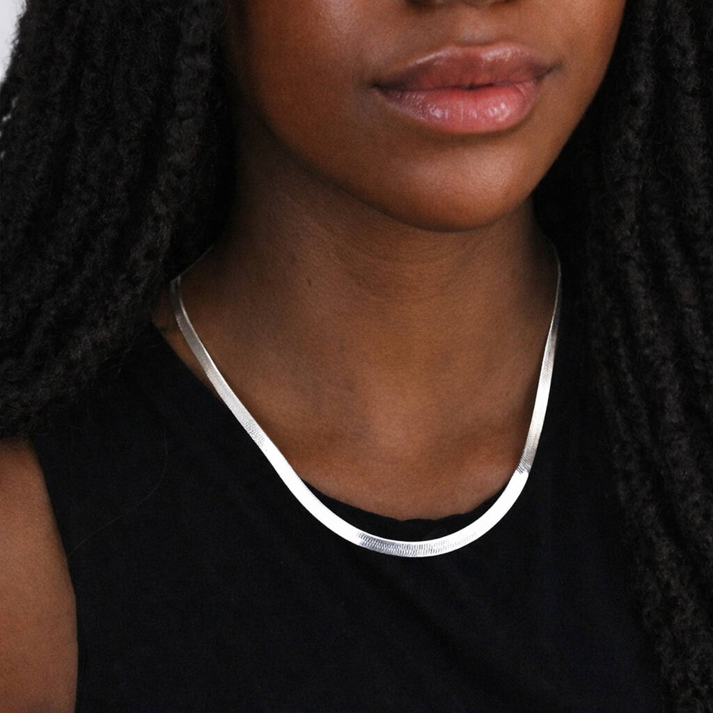 Sterling Silver Wide Flat Triple Herringbone Chain Necklace – 16in To 18in